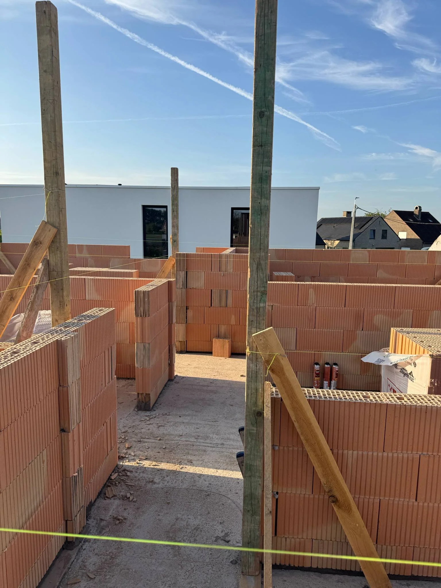 ✔️ Metselwerken met focus op precisie en afwerking. Dankzij de keuze voor snelbouwstenen in combinatie met PU-lijm in plaats van traditionele mortel of lijmmortel, kon de ruwbouw sneller en properder worden opgetrokken.